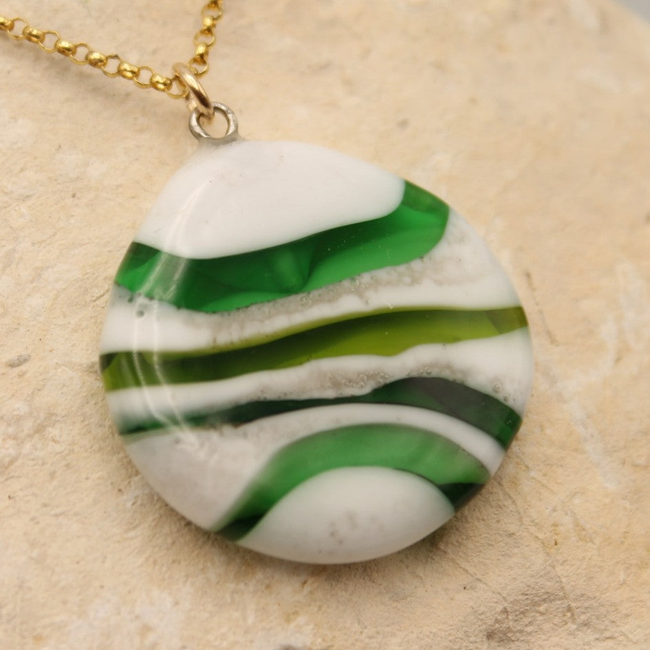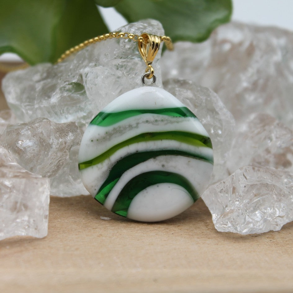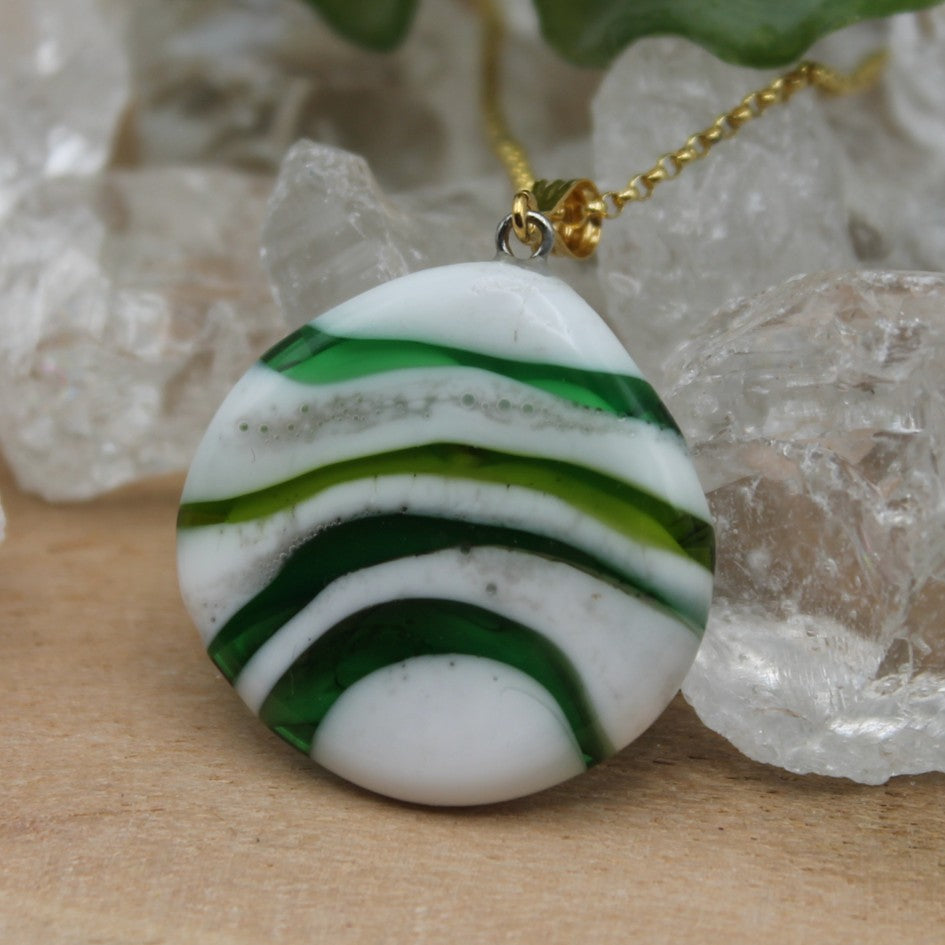 Deze witte hanger met groene lijntekeningen is heel elegant. De groene lijntjes zijn op sommige plekken doorzichtig waardoor je een mooi lichtspel krijgt.