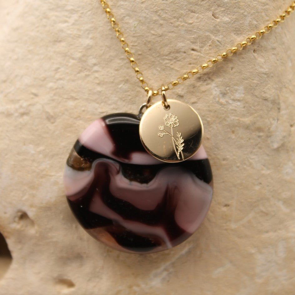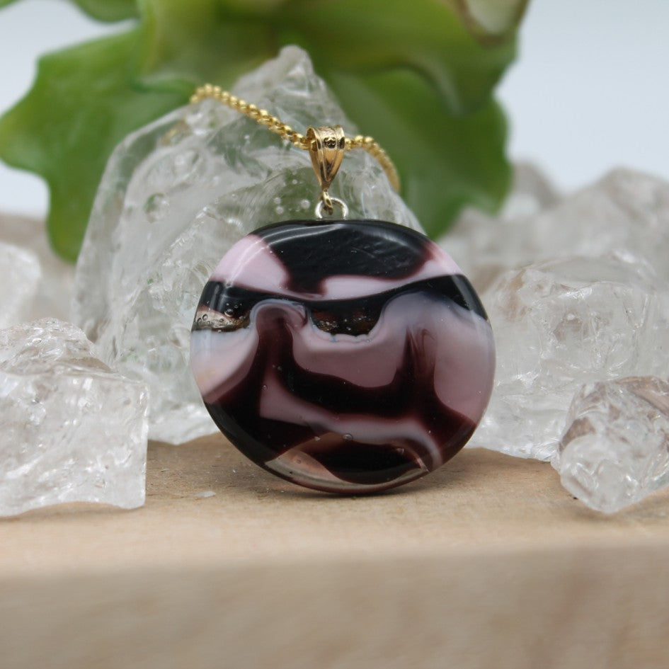Deze hanger heeft een prachtig kleurenspel van paarse en roze tinten die speels in mekaar overlopen.